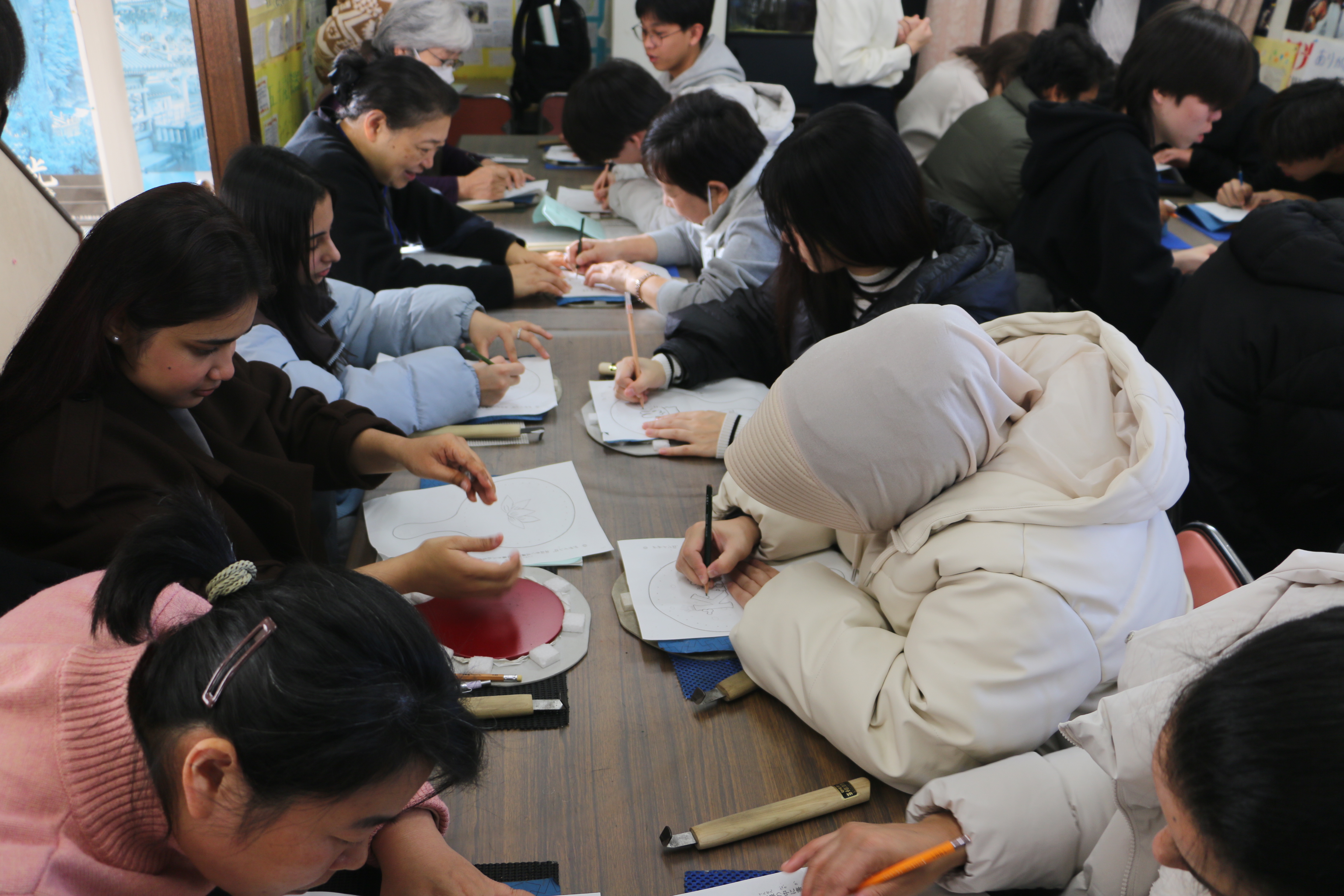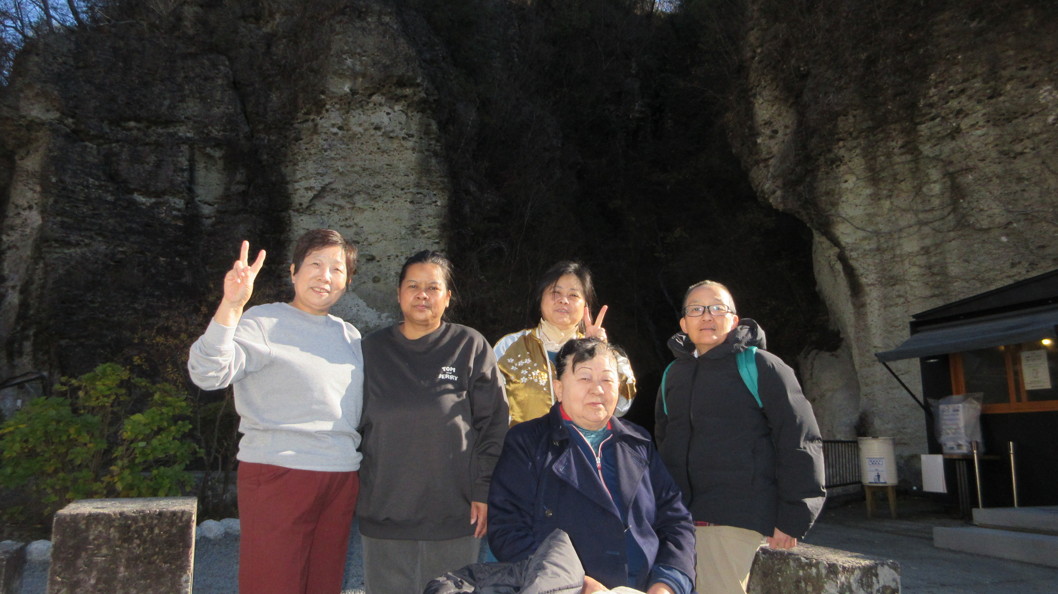 2日目は、日光彫りの体験をしました。事前に描いた絵をもとに「ひっかき刀」を使って彫りました。難しかったですが、楽しんで体験していました。その後は大谷資料館へ移動し、大谷石の採掘場跡を見学しました。地下は壮大な空間で、感動していました。