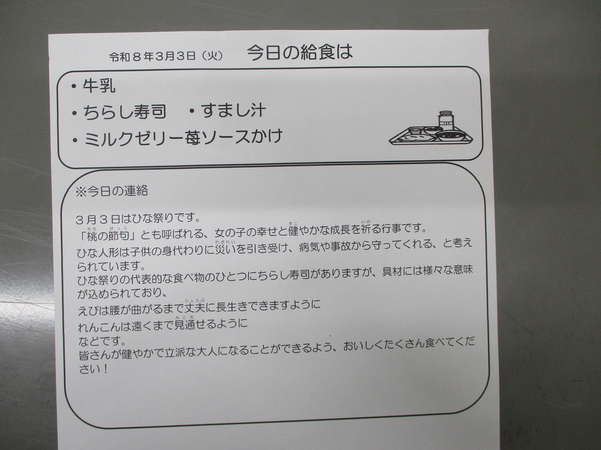 | 3月3日(火)〈ひなまつり献立〉 | |