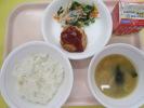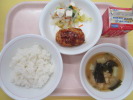 | ご飯 お好みハンバーグ 豆腐のサラダ じゃがいものみそ汁 牛乳 |