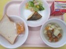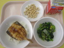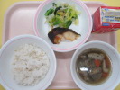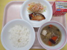 | ご飯 さわらの幽庵焼き もやしのごまじょうゆ けんちん汁 牛乳 |