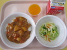| カレーライス フレンチサラダ つぶつぶオレンジゼリー 牛乳 |