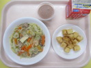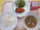 | ご飯 魚の竜田揚げ 磯和え いも煮風汁 牛乳 |
