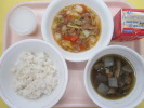 | 麦ごはん 白菜と豚肉のうま煮 けんちん汁 カルピスゼリー 牛乳 |