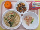 | みそ煮込みうどん 大根ツナサラダ ひみこスナック みかん 牛乳 |