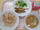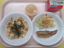 | 麦ごはん 魚のさざれ焼き ごま和え けんちん汁 牛乳 |