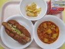 | ホットドッグ フライドポテト チキンと豆のトマト煮 牛乳 |