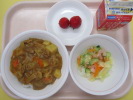 | 夏野菜カレー バジルドレサラダ 小玉すいか 牛乳 |