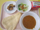 | ナン キーマカレー アーモンド入りサラダ キャラメルおさつ |