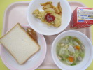 | ミルクパン 白身魚のラタトゥイユ添え 野菜のクリームスープ 牛乳 |