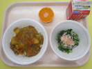 | カレーライス かにかまサラダ 菊花みかん 牛乳 |