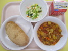 | 黒砂糖パン 鶏肉のマーマレード焼き 豆入りポテトサラダ 冬瓜入りABCスープ 牛乳 |