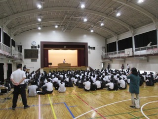 夏休み前の全校集会の様子です。4月には初々しく進級・進学した生徒たちも、この3か月ですっかりたくましくなりました。保護者のみなさまがたには、生徒の成長をサポートいただき、ありがとうございました。この夏休みも。昨年以上に暑い夏になりそうです。暑さと上手に付き合い、充実した44日間としていきましょう。
