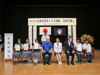 令和7年度第75回「社会を明るくする運動」の表彰式が、足立区役所本庁舎2階ホールで開催されました。作文や標語で入賞した生徒たちが表彰されました。近藤区長(第75回「社会を明るく運動」足立区推進委員会委員長)から直接表彰された皆さんです。区内小学校の演奏もあり、温かみのある表彰式となりました。