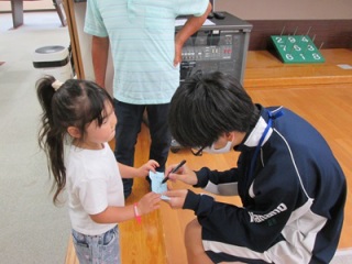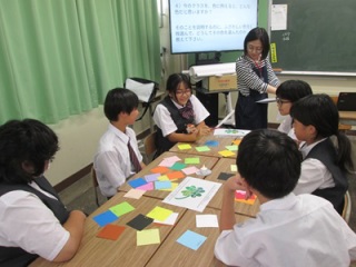 Joeと英語の授業をしてくださいました。オーストラリア〇☓クイズ等ゲーム形式で楽しく授業を進めてくださいました。社会科では、二宮芽美先生が倫理・社会(通称倫社)を教えてくださいました。中学校では教えない分野で、なかなか高度な内容でした。美術の永吉聖先生は、「紙で動物を作ろう」という内容でした。一人一人が楽しそうに取り組んでいました。