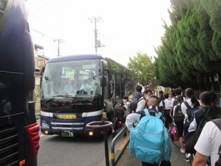 本日(令和7年9月14日)から2泊3日で、1年生の「魚沼自然教室」が実施されます。今朝方、1年生の生徒と教職員は学校を出発しました。見送りに来ていただいた保護者のみなさま、ありがとうございました。