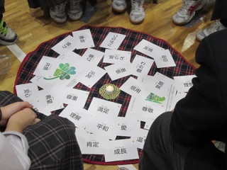 本日⑥校時、に「修復的対話」の授業(特定非営利活動法人/修復的対話の会の主催する授業)を行いました。各クラスで3つのグループを編成。修復的対話トーキングサークルとして授業を行いました。写真は本日使用した「言葉カード」。このカードの中から「他の人を尊重する(リスペクトする、大切にする)ために必要な言葉」を選ぶ活動を行いました。一人一人で選んだ言葉をB5の紙に書き出してこの授業を終えました。気持ちが前向きになるような言葉を選ぶことができましたか?