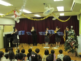 | 吹奏楽部が東花畑保育園で演奏しました。 |