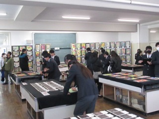 学習作品展は8:30~12:00です。各学年の展示、国語科、技術科、家庭科、保健体育科、美術部の作品が展示されていました。作品は、例年以上に充実していました。