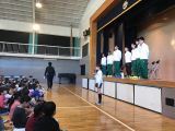 いよいよ来週に迫った音楽会。今日はその音楽会を盛り上げるため、音楽会オープニング集会が行われました。代表委員の音楽会スローガンの発表を皮切りに、各学年の見所紹介。そして、「今日から明日へ」の全校合唱で、本番に向けて気持ちを一つにすることができました。 来週の音楽会も楽しみですね!!花保小の心は一つ!!