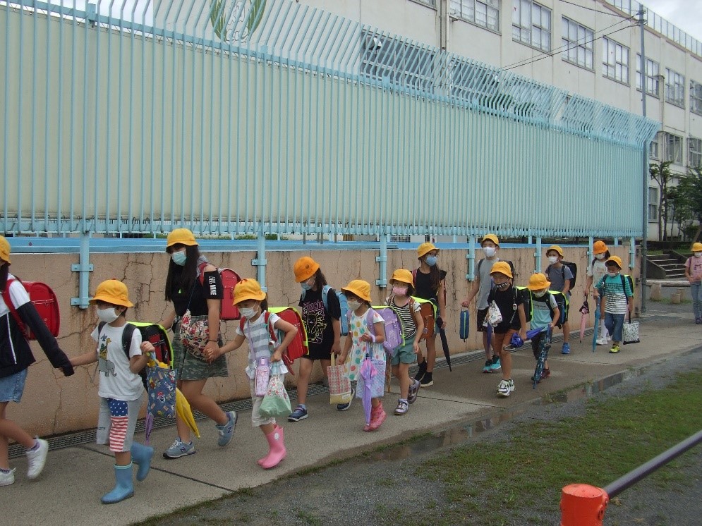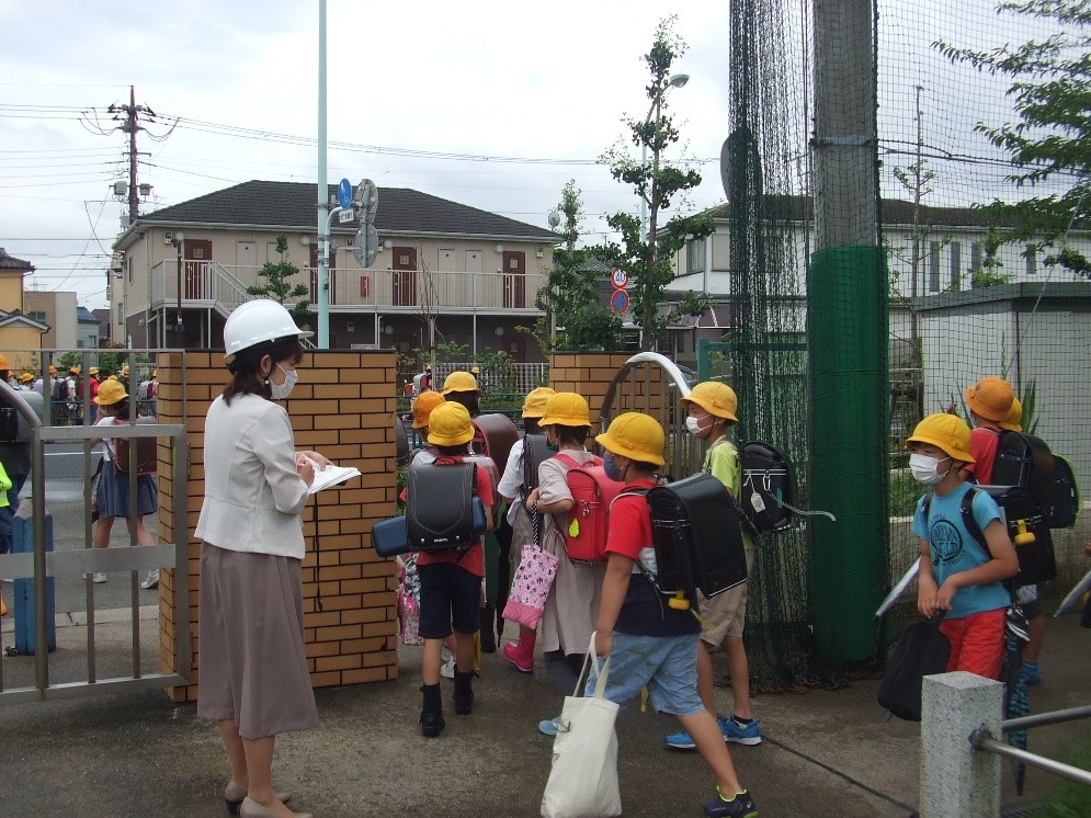 集団下校についての指導をしました。その後は方面別に担当教員と下校