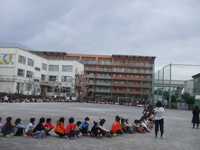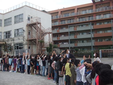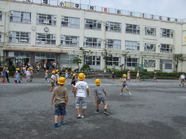 今日は避難訓練で、集団下校がありました。地域ごとに担当クラスに集め、
