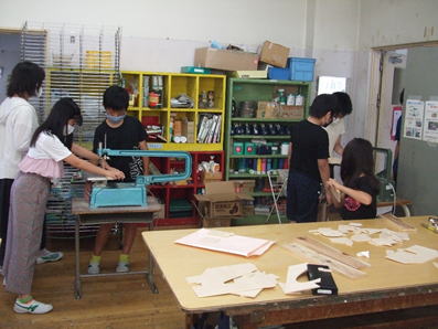 5年生は電動のこぎりを使っての活動をしています。直線や曲線、くり抜きなど楽しそうにいろいろ試しています。