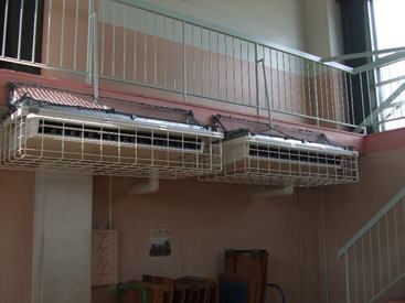 体育館にエアコンが12台入ったので、快適に体育ができます。