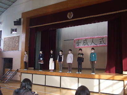 今日は4年生が二分の一成人式、3年生が小松菜発表会を実施しました。