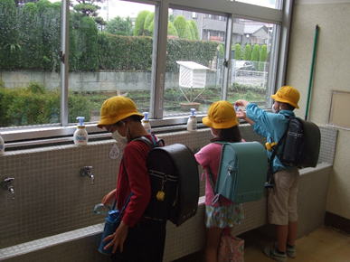 22日(月)から通常登校になりました。教室に入る前に手を洗う