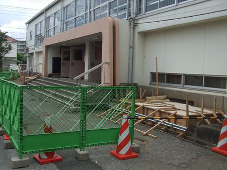 体育館のエアコン工事が始まりました。しばらくは使えませんが、9月
