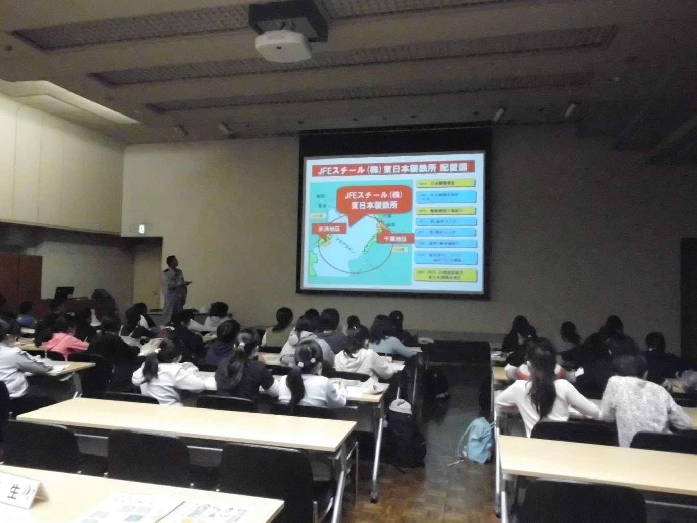 『JFEスチール 川崎工場』では、原料から鉄ができるまでの話を聞いた後に、実際に鉄が圧縮され薄くなり、伸びていく様子を見学しました。社会科で学習していたものを実際に見学し、流れている鉄から伝わってくる熱を感じ「鉄が熱せられるとこんなに熱いんだ」「原料(鉄鉱石など)を実際に見ることができてよかった」とバスの中で話していました。