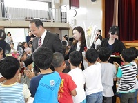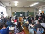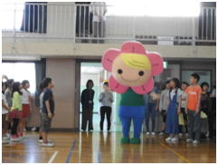 全校合唱「ともだちになるために」では、弘梅ちゃんが登場して,会場は盛り上がりました。 |