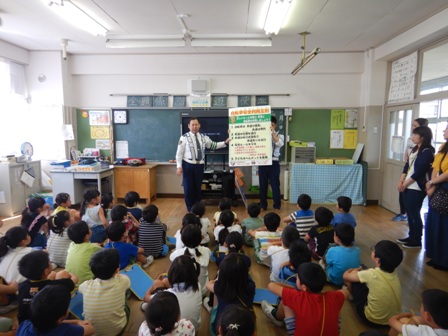 綾瀬警察署の方が学校に来てくださり、教室で自転車に乗る時の交通ルールやマナーについて教えてくださりました。