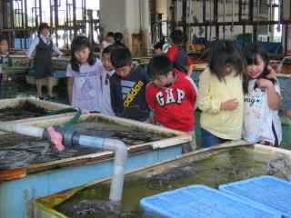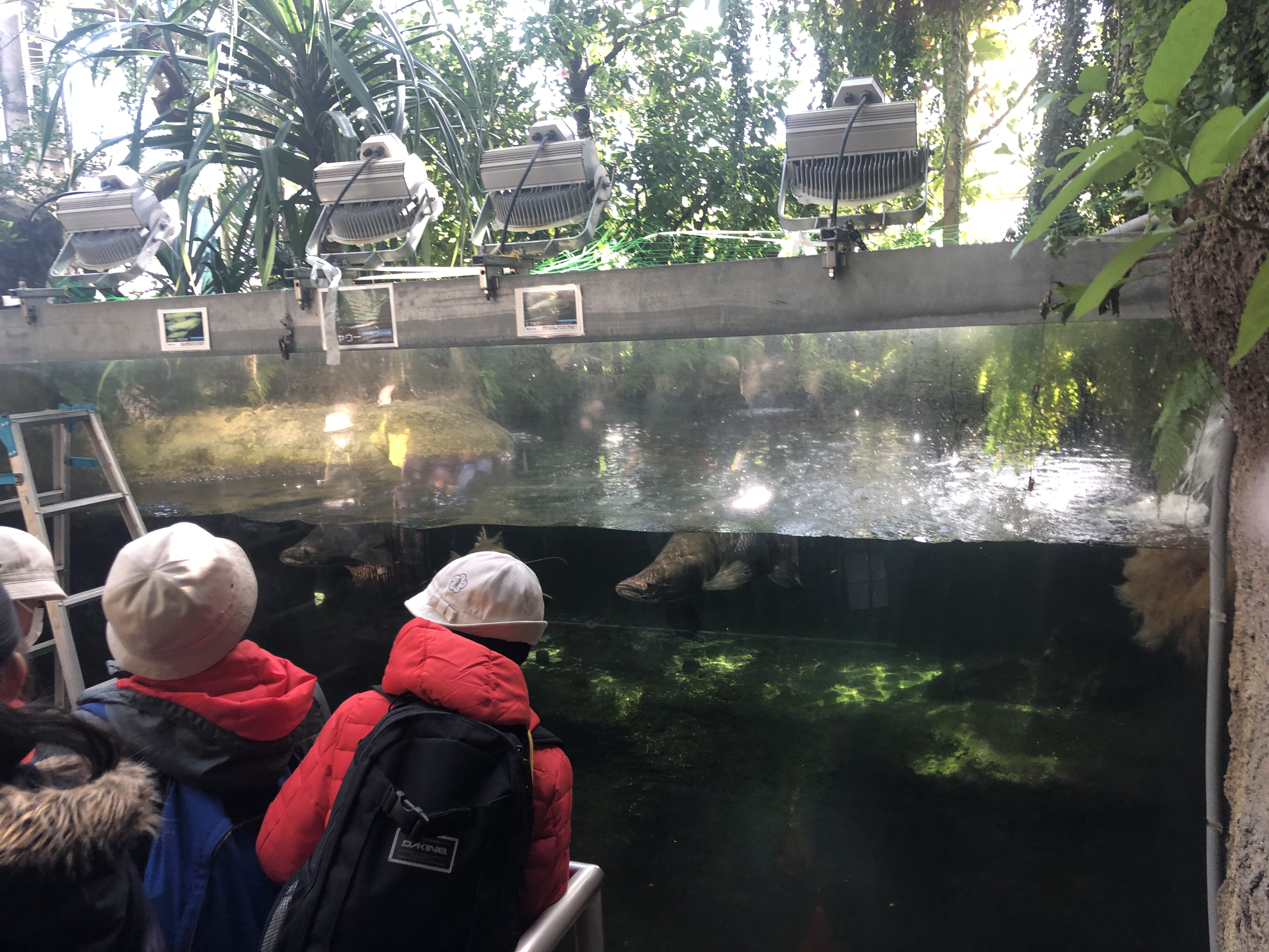 「足立区生物園」では、昼食後、園内に入り、大型魚の食事の様子やチョウが飛んでいる様子など、たくさんの生き物の生態を見学しました。