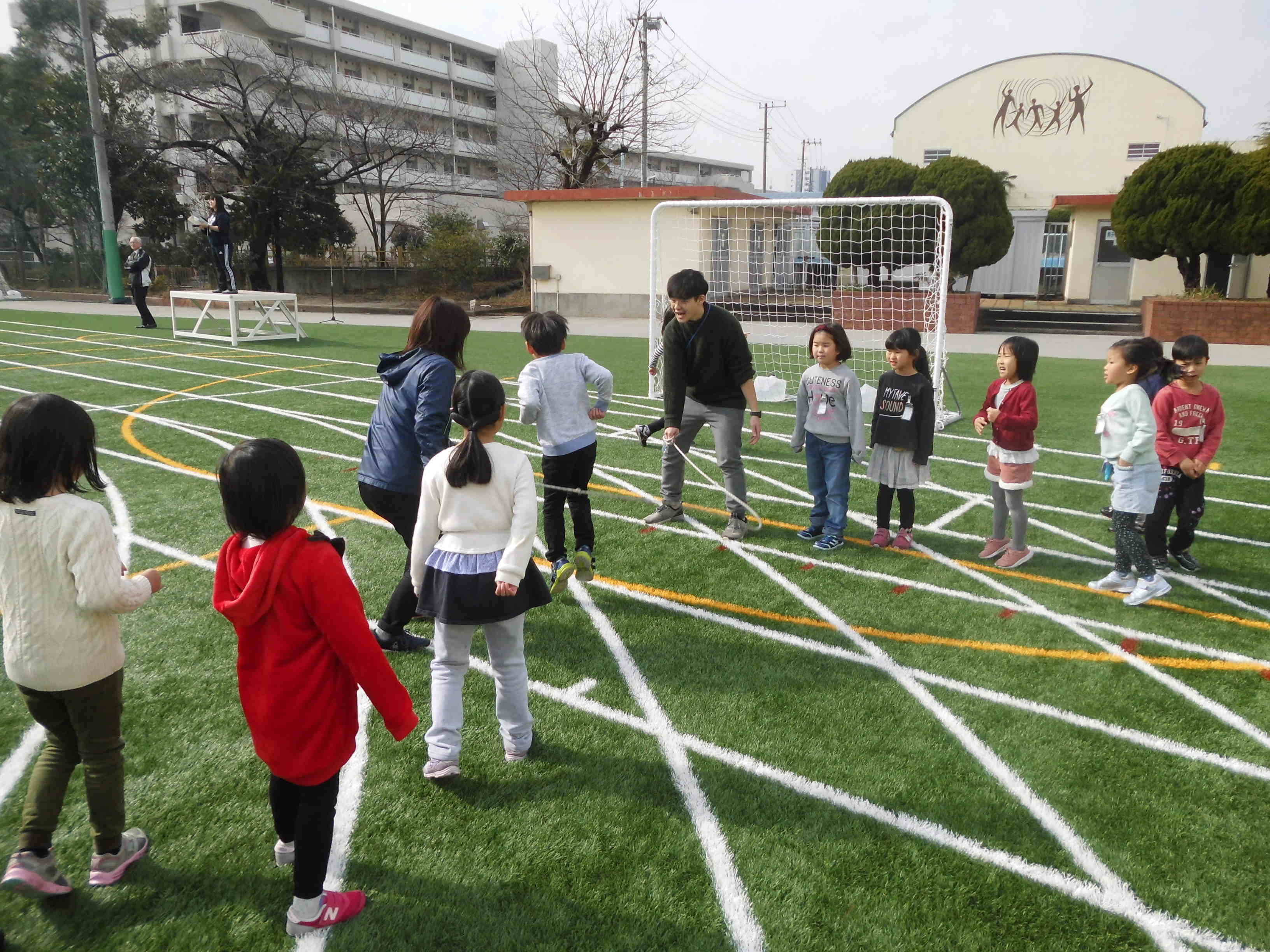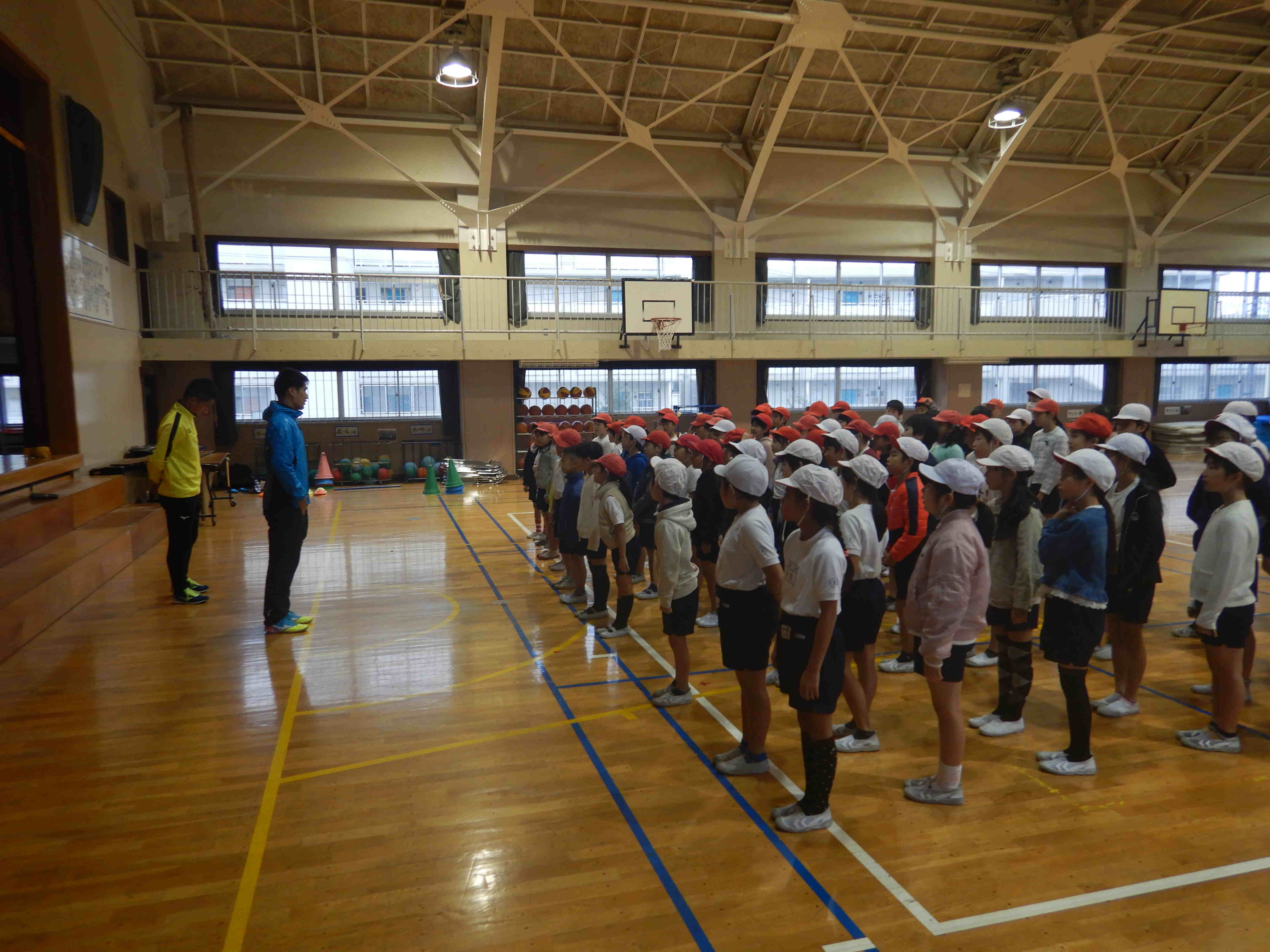 走るためのポイントを教えてもらいながら、姿勢やつま先、腕の動かし方を意識して走りました。特につま先を使ってジャンプするとより高く飛べることを体感してからの走りは、どの児童もリズミカルで、初めに走った時よりも速く走ることができました。
