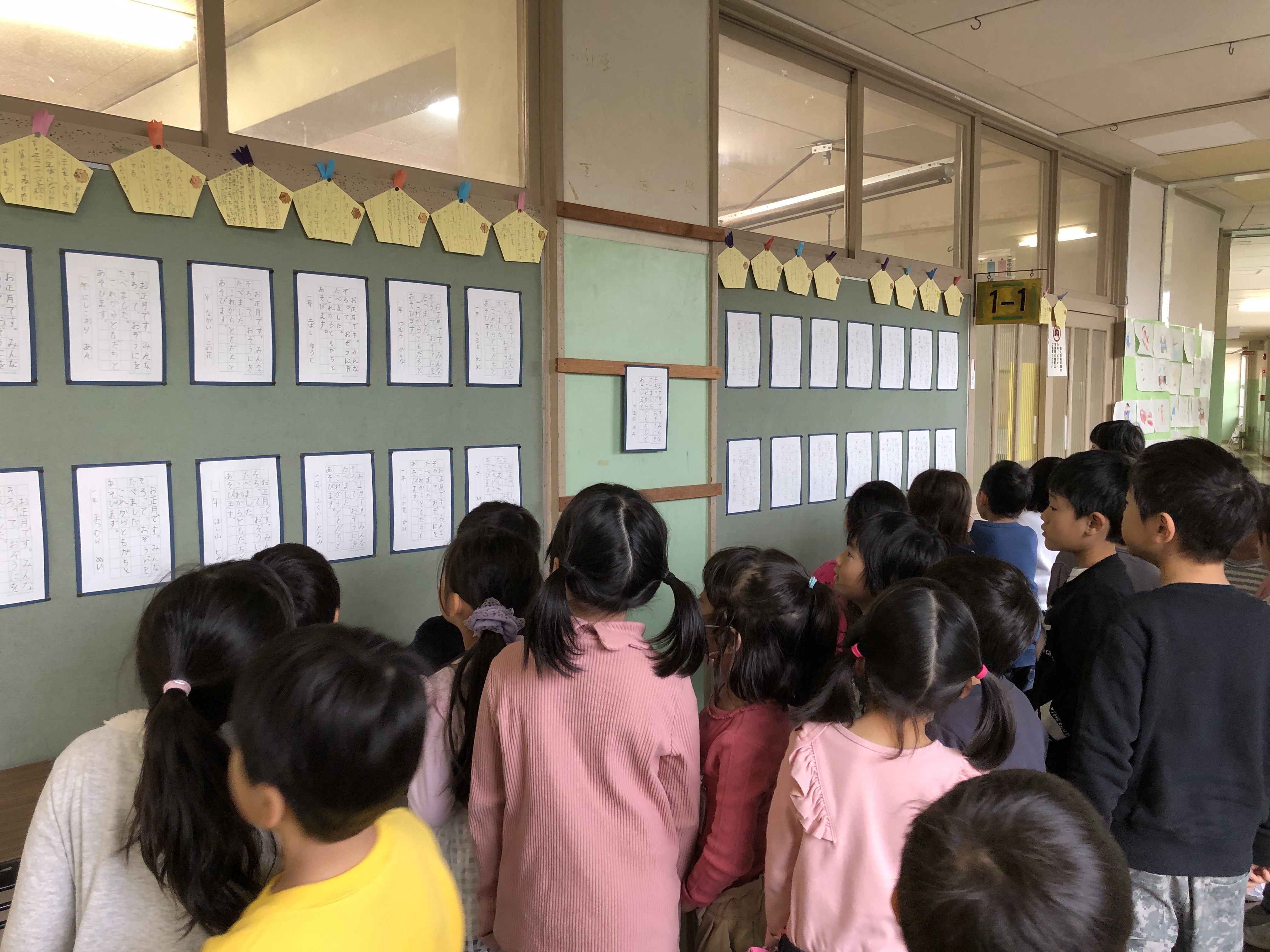 子供たちの作品は、各クラスの廊下に掲示しています。ぜひご覧になり、励ましの声をかけていただきたいと思います。