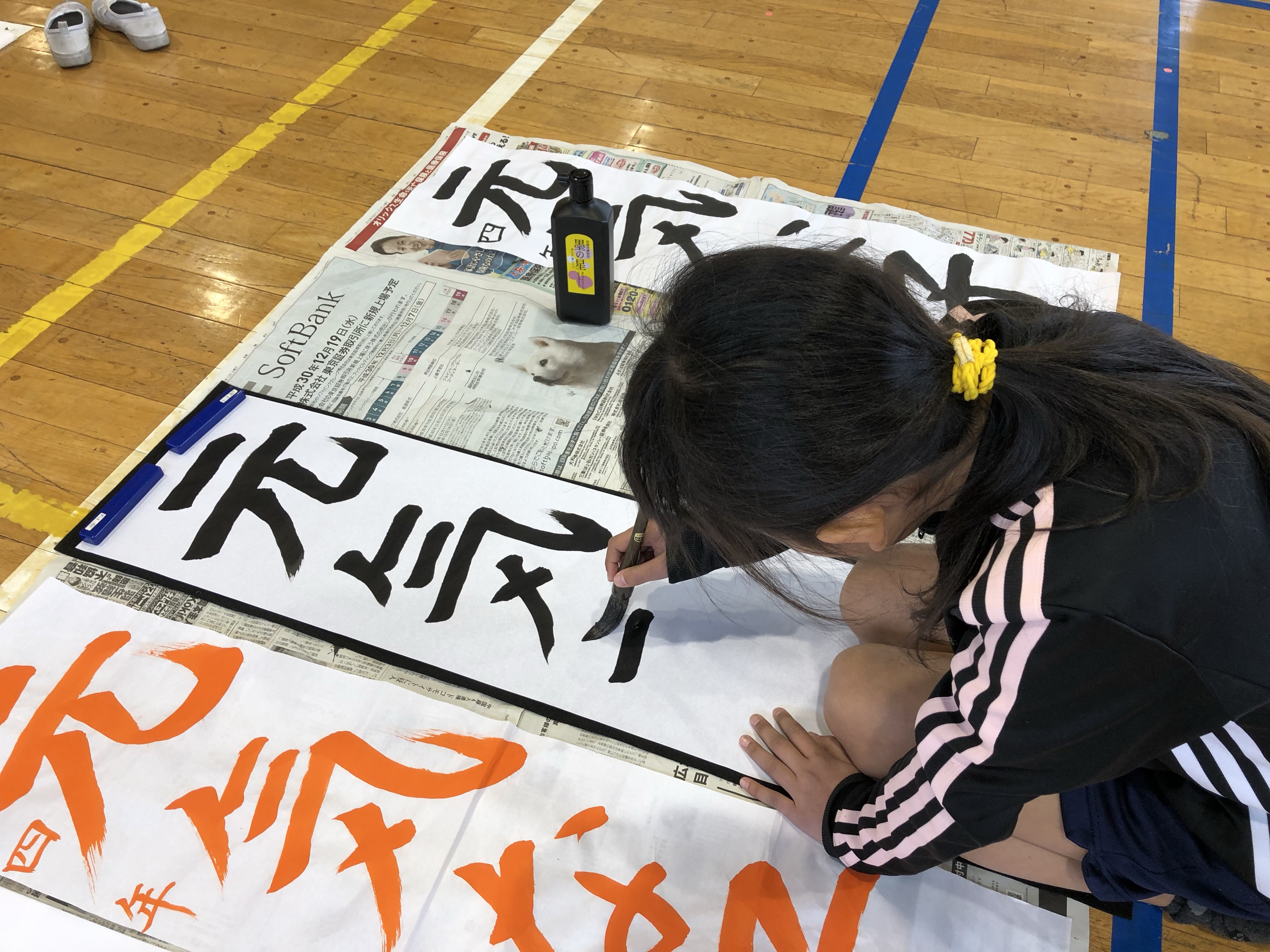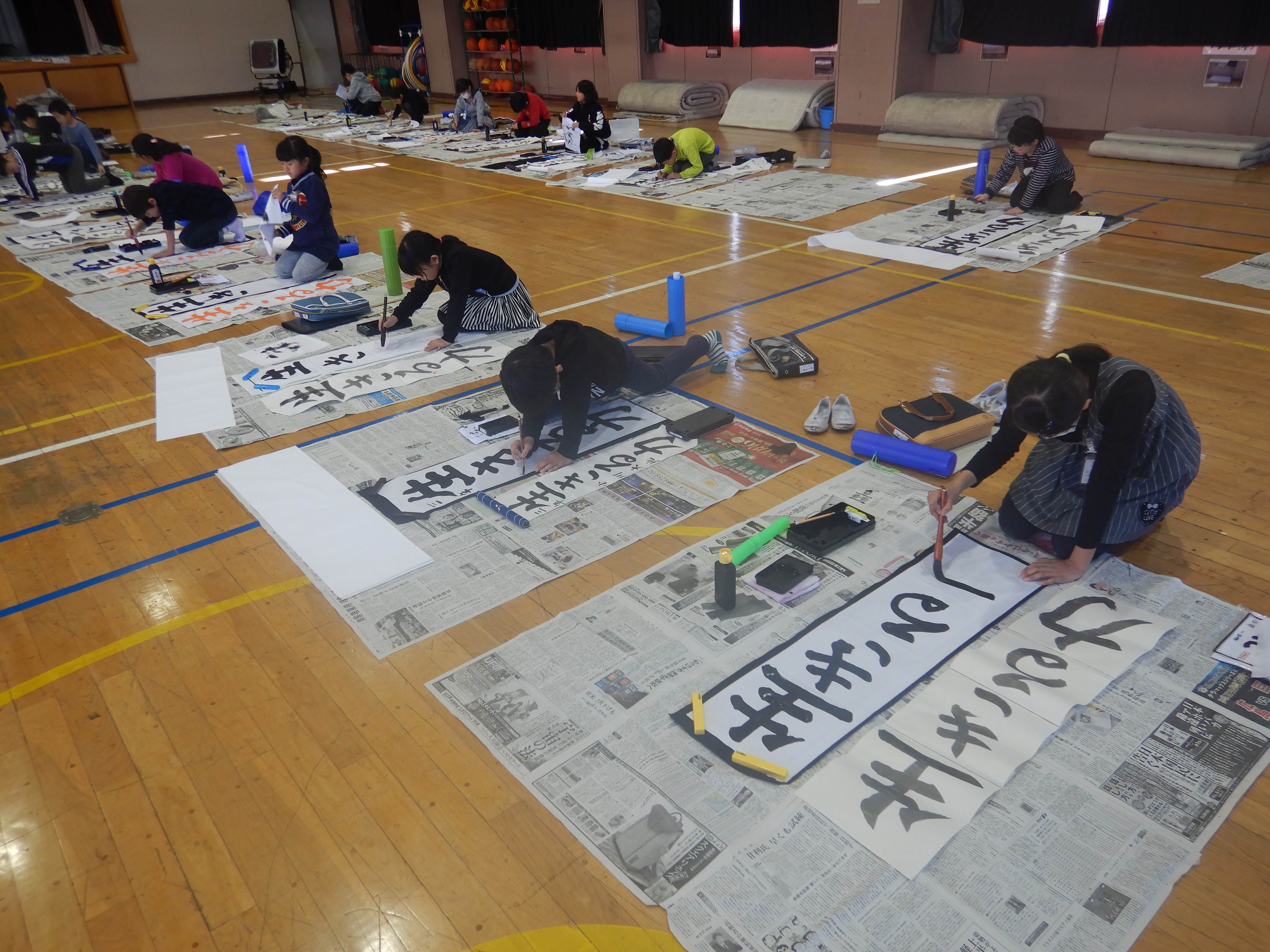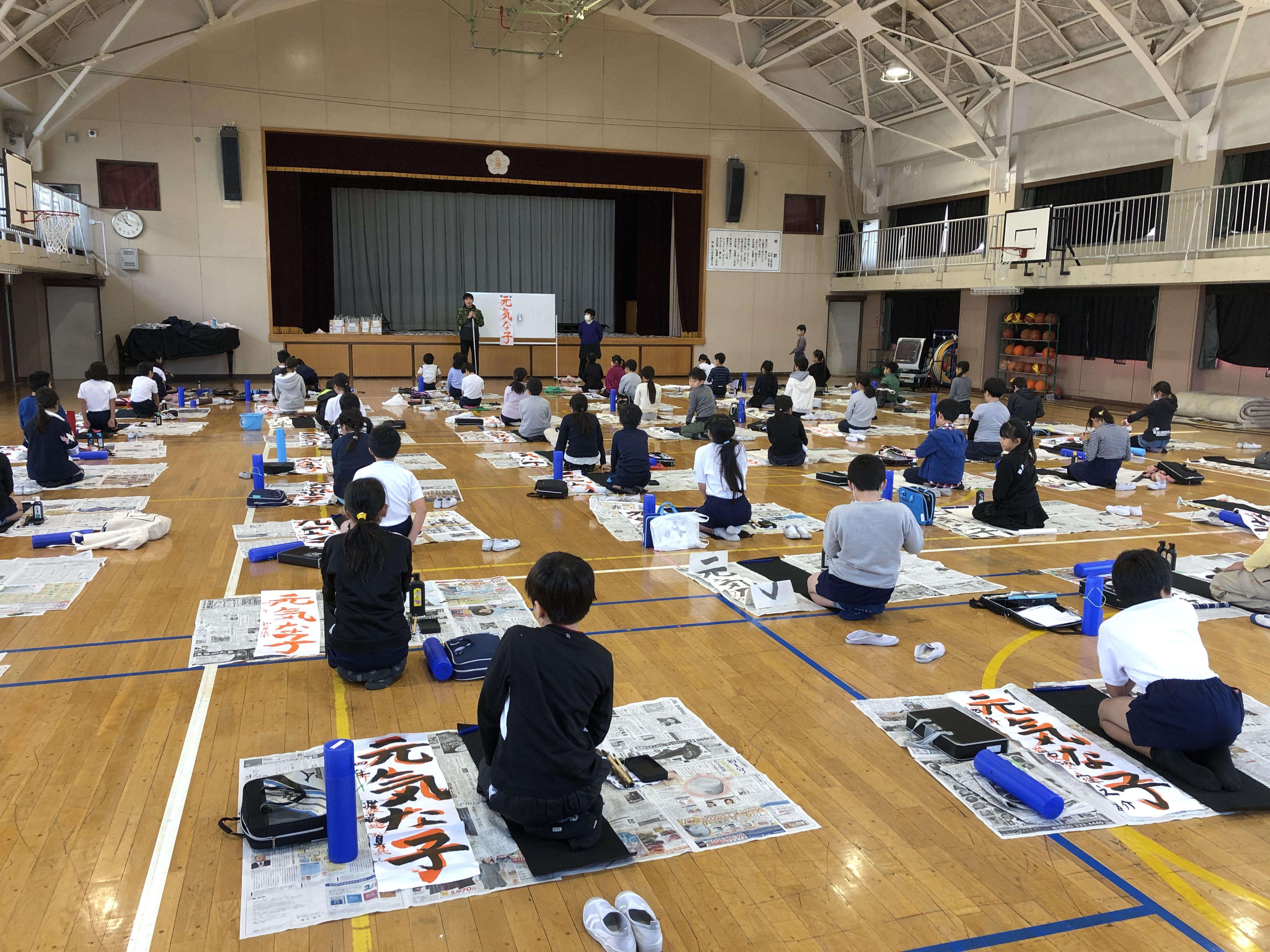 4年生は1月10日、3年生は1月11日に、体育館で書初め会を行いました。