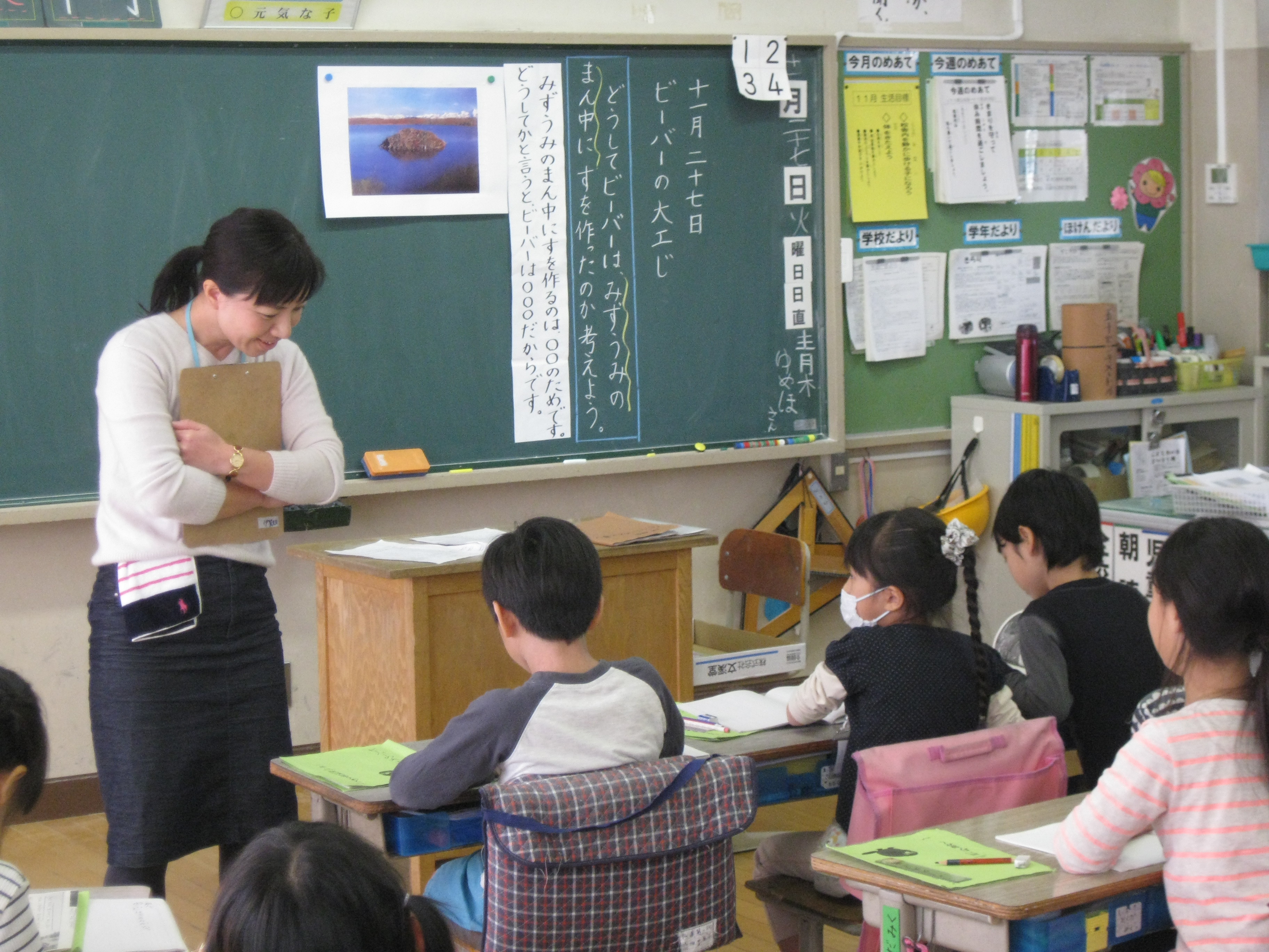 国語の「ビーバーの大工事」の教材を読み、「どうして,ビーバーは湖の真ん中に巣を作るのだろう」と考えることで、教科書の本文に書かれていないことを自分なりに想像することができました。