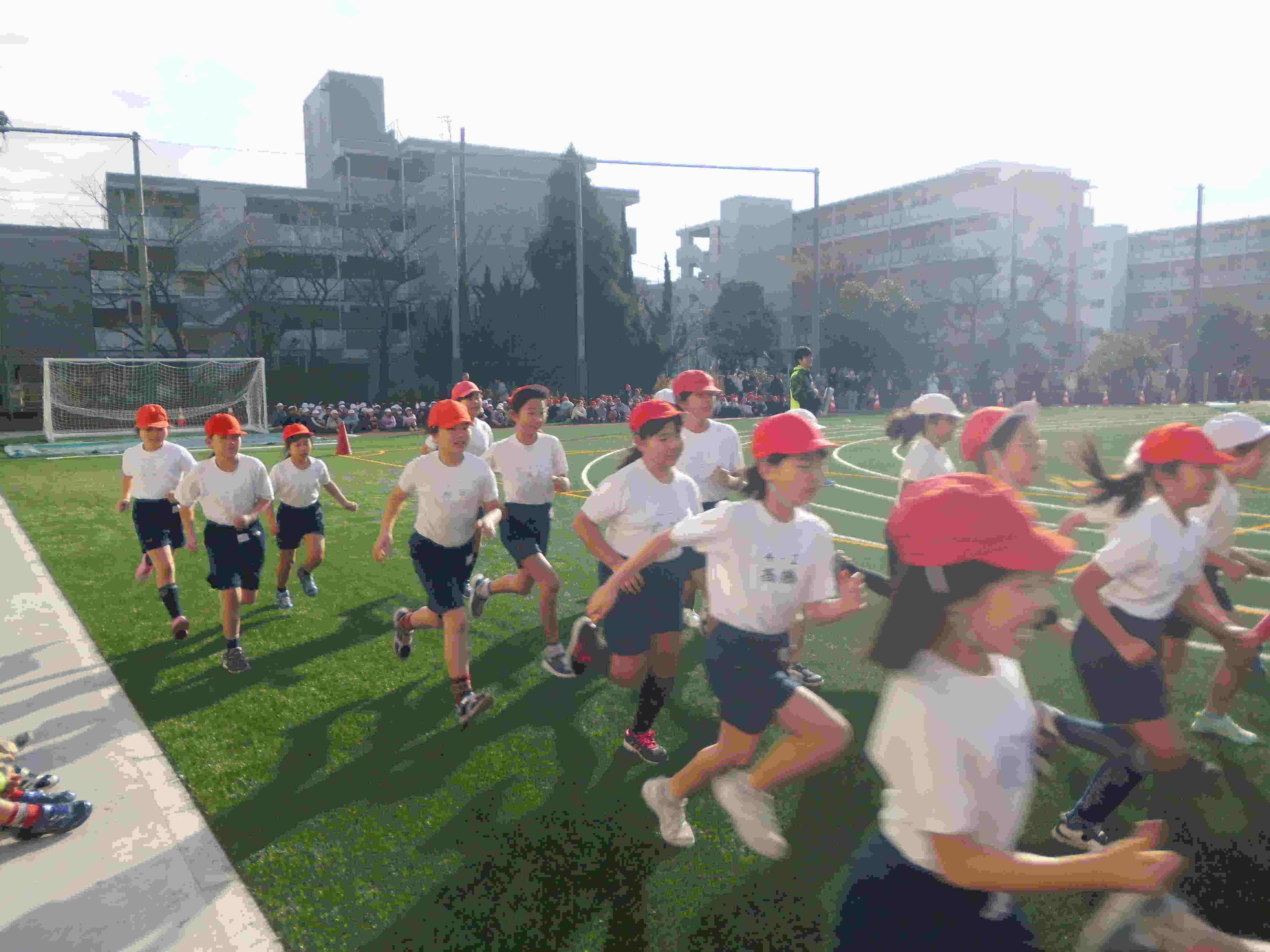 校庭が人工芝になってから、初めてのマラソン大会が行われました。