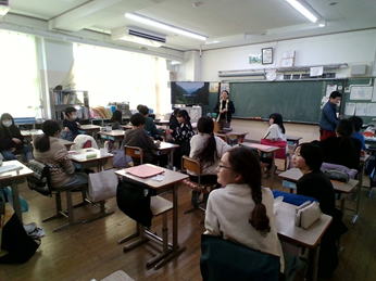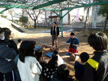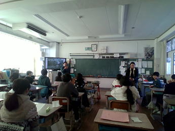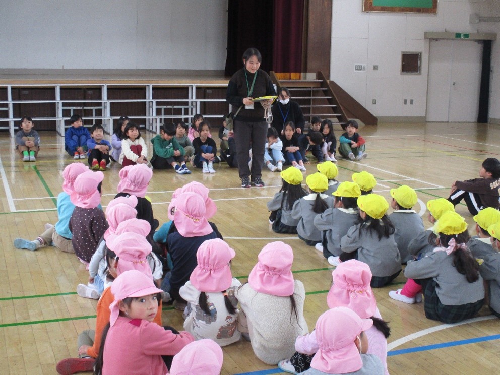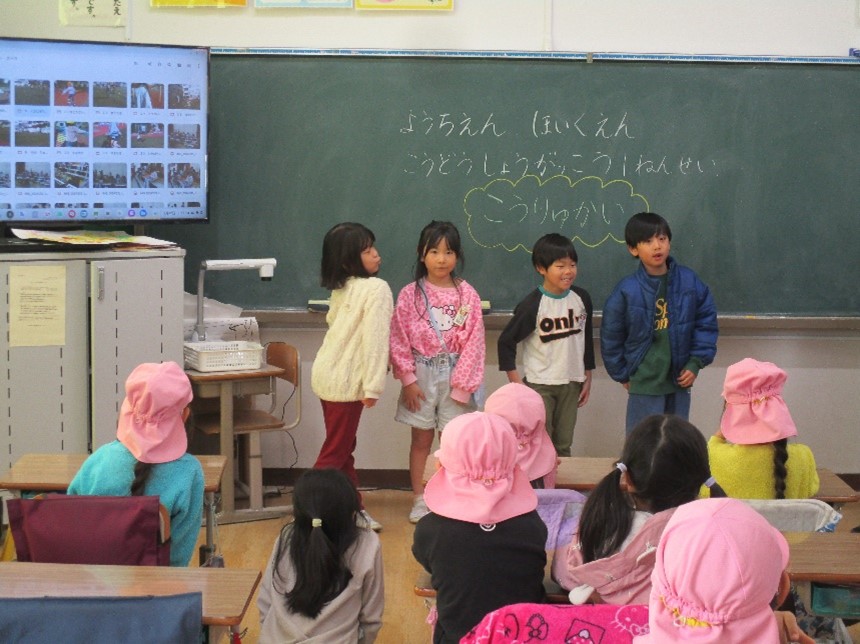 図書室などの施設を見学し、1年生が小学校に入学してできるようになったことを園児の皆さんの前で発表しました。