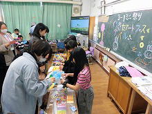 児童の想像力、表現力のあふれた図工・家庭科の作品が体育館に展示されました。今回の展覧会は、作品展示だけでなく、児童の活動も見ていただくため、教室では図工の授業公開を行いました。保護者と一緒に創作活動をしたり、保護者がお客さんとなった「栗北まつり・ミニ」をしたり、児童も保護者も楽しめる内容となりました。そして、6年生は制作したコマ撮りアニメの上映と歌唱を組み合わせたミニコンサートを体育館で開催しました。参観者からは、「感動した」という多数のお声をいただき、大成功の展覧会となりました。
