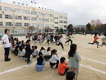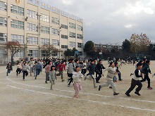 集会委員会の児童が考えた「なんでもバスケット・ランニング」をしました。児童が出したお題に当てはまる人は校庭を一周するという、持久走旬間にふさわしい斬新でハードなゲームでした。「冬が好きな人」というお題の時に、多くの子がにこにこして走り出していったので、子供たちは元気に走り回りたいのだなと驚きとともにほのぼのとした気持ちになりました。