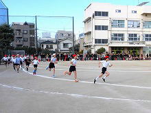 町会自治会連合会の運動会に近隣小学校5校が招待され、リレー競争をしました。この日のために選手は放課後等にバトンパスの練習をしてきました。バトンがうまくつながり、走っても追い越しをみせるなど熱いレースでした。結果は男子が1位、女子が2位という大変素晴しい成績でした。
