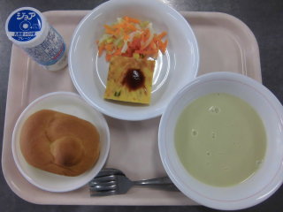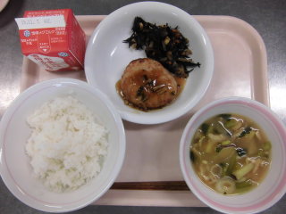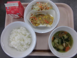 <食材の産地> かぶ・・・千葉県 にんじん・・・北海道 玉ねぎ・・・北海道 しめじ・・・長野県 しょうが・・・熊本県 もやし・・・栃木県 キャベツ・・・茨城県 ※牛乳は、茨城県・千葉県・群馬県・栃木県・北海道・山形県・宮城県の原乳を使用しています。 ※現在出荷制限されている食材については、給食に使用していません。