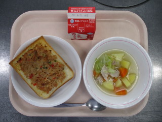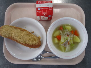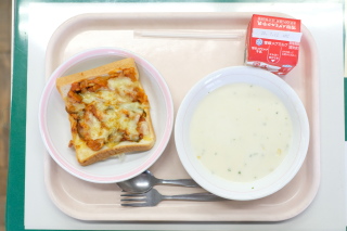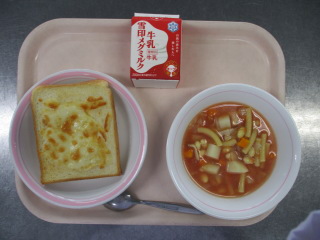 | ガーリックトースト ポークビーンズ 牛乳 |