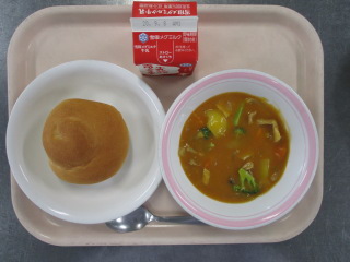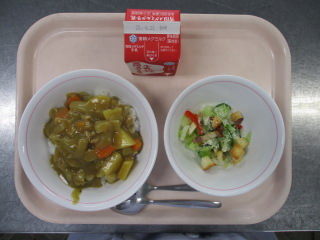 | チキンカレーライス 豆腐いりサラダ 牛乳 |