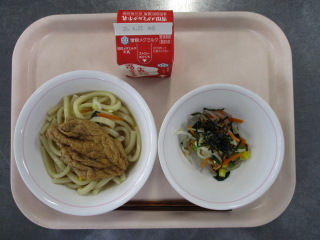 | 冷やしきつねうどん ポテトのハニーサラダ 牛乳 |