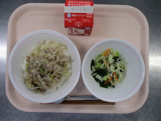 | 豚肉のクッパ 春雨サラダ 牛乳 |