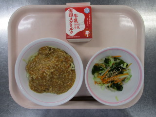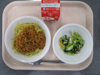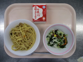 | 和風きのこスパゲティ 海藻サラダ 牛乳 |