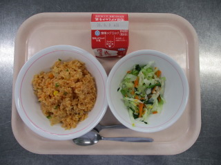 | チリビーンズライス マセドアンサラダ 牛乳 |